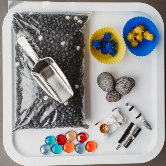 Our optional bin is a great way to seal and store your kit for easy access next time! Otherwise, feel free to get creative and use on a tray, sensory table or container you already have at home!